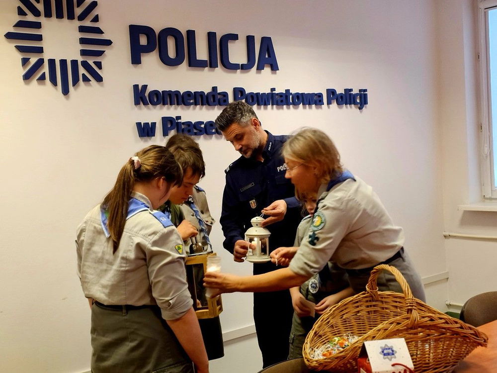 Betlejemskie Światło Pokoju w Komendzie Powiatowej Policji w Piasecznie