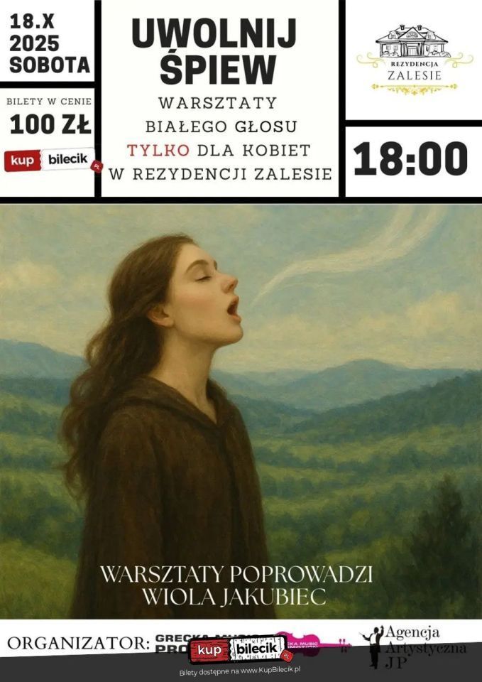 18 października 2025 roku o godzinie 18:00 w klimatycznej Rezydencji Zalesie odbędzie się wyjątkowe spotkanie dedykowane kobietom - warsztaty białego głosu prowadzone przez Wiolę Jakubiec. To niezwykłe wydarzenie jest zaproszeniem do odkrycia swojej naturalnej mocy poprzez głos - pierwotny, autentyczny i pełen energii.